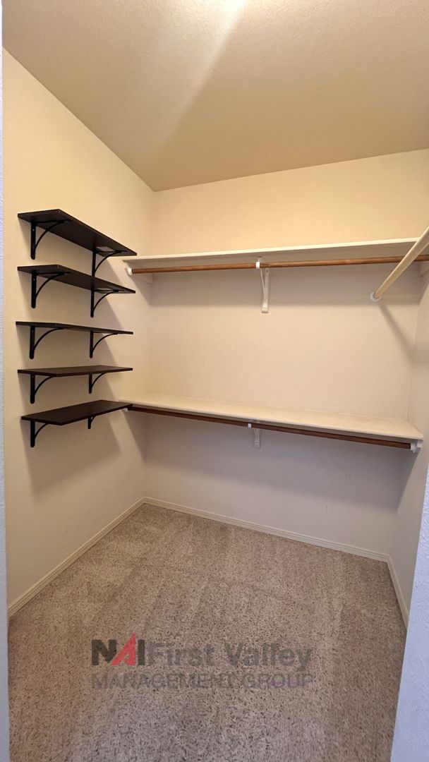 This 906 Sq. Ft. 1 bed/1 bath Upstairs Floor Unit features a split floor plan with an open living area. The main bedroom includes a private bathroom and a large walk-in closet.